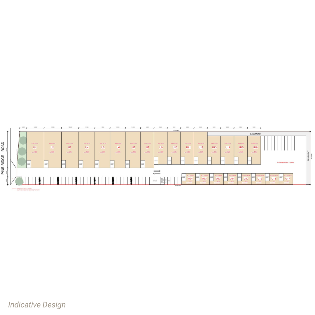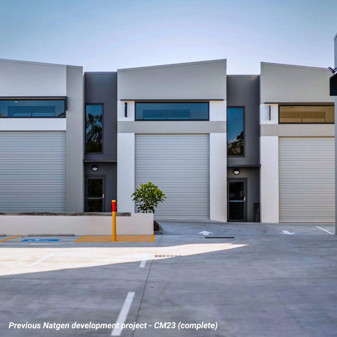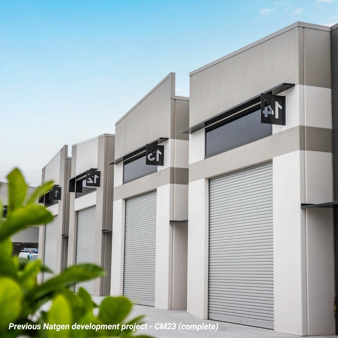 A new commercial warehouse facility comprising 24 strata-titled units (approximately 80m to 325m ). The Development is designed to a high specification and will include on-site car parking, individual amenities, and appropriate landscaped common areas.