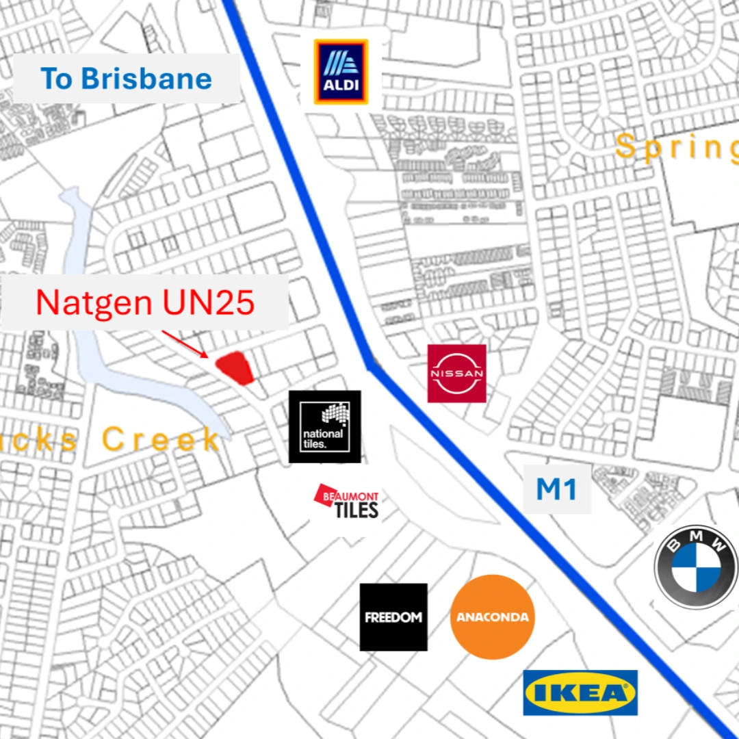 Easy access to the M1 Pacific Highway, 20 minutes from Brisbane CBD or 30 minutes to the Gold Coast.